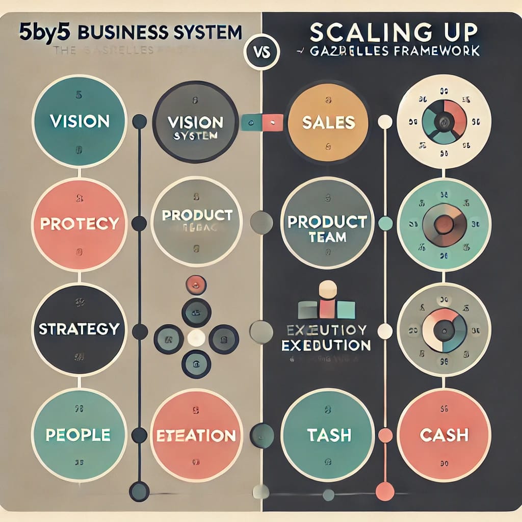 When it comes to business growth, two popular systems stand out for their comprehensive approaches: the 5by5 Business System and Scaling Up (Gazelles Framework) by Verne Harnish. Both are designed to help businesses streamline their operations, scale effectively, and achieve long-term success. However, the two systems take different approaches to addressing business challenges, making them suitable for different types of organizations and growth goals.
